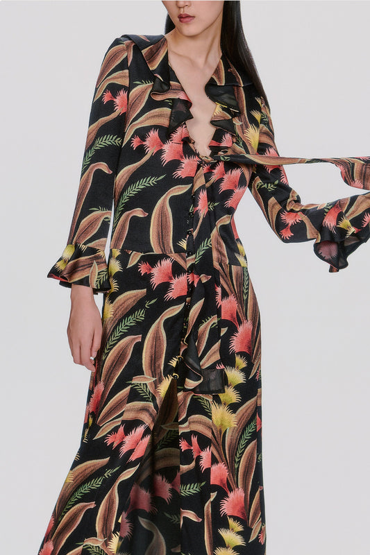 Feather Fern Crinkle Rayon Ruffle Tie Dress