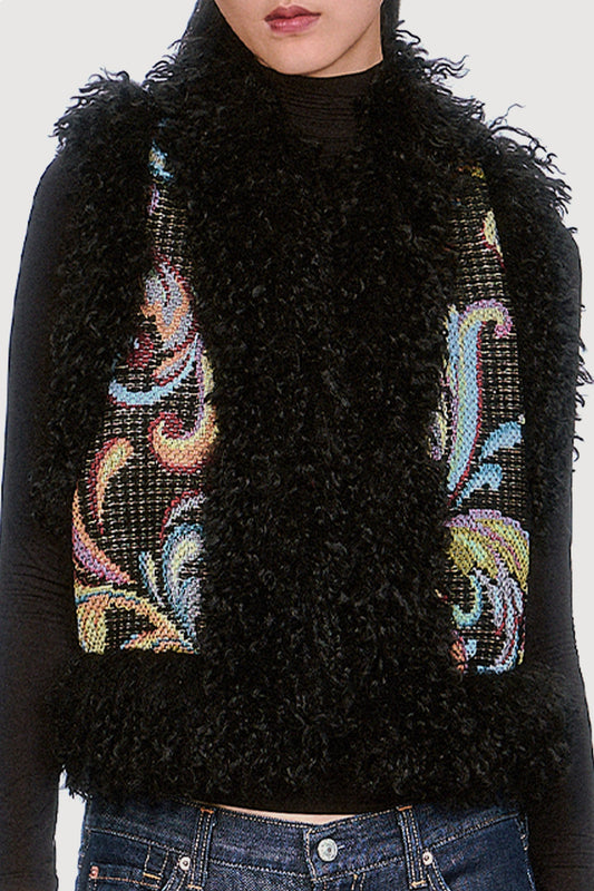 Tapestry Faux Fur Trim Vest