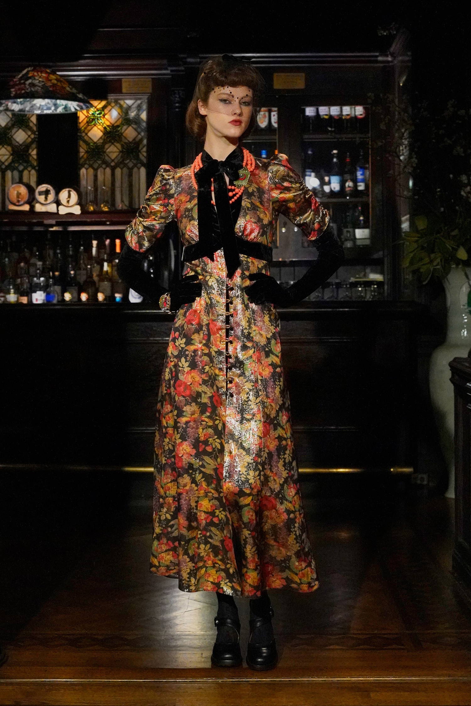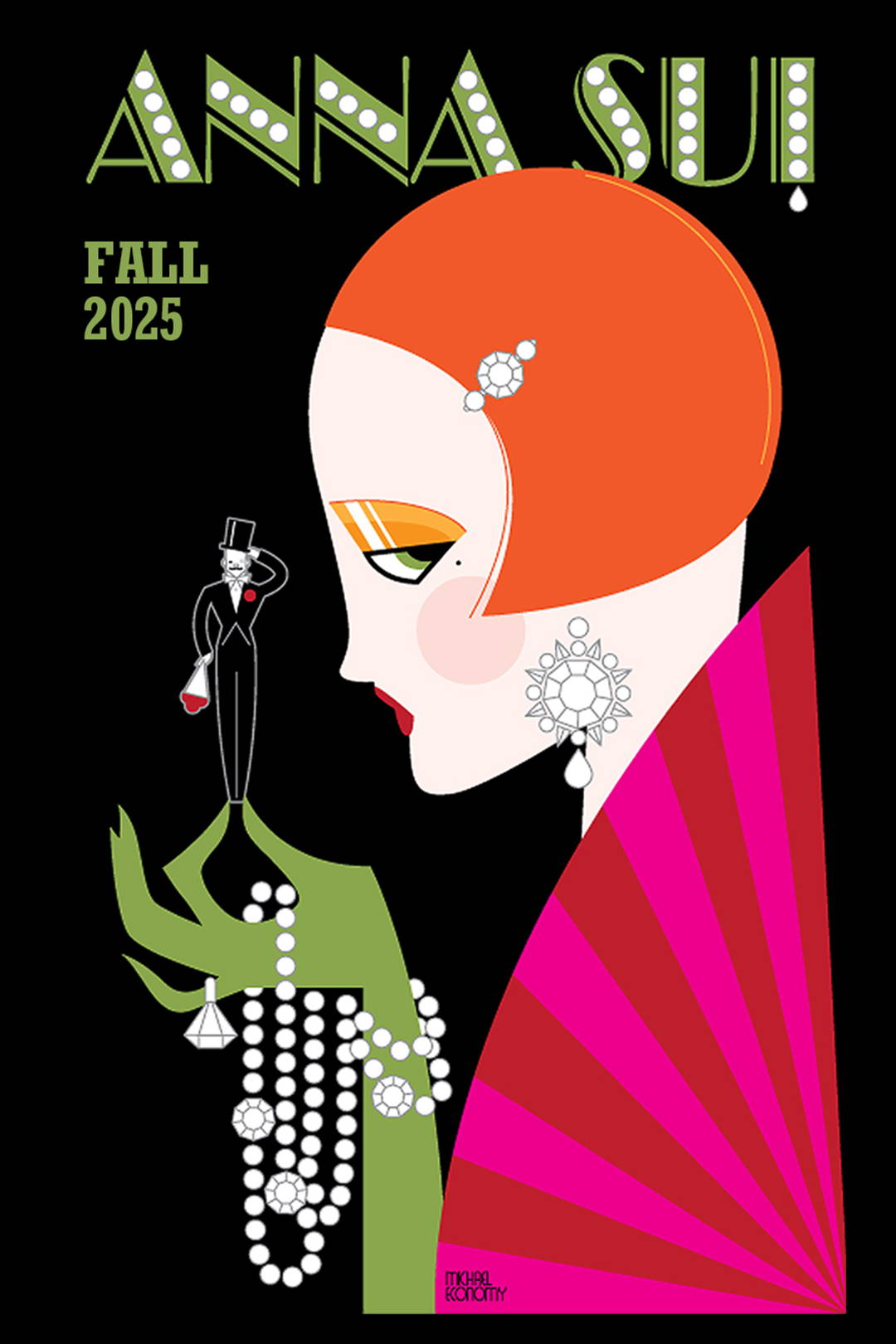 For Anna Sui’s Autumn/Winter 2025 collection, Sui immerses herself in the world of the madcap heiress; women who would come to inherit fortunes beyond belief, only to spend it on jewelry, art and men by their life’s end. Citing the likes of Barbara Hutton, Doris Duke or Peggy Guggenheim, amongst others, Sui was drawn to their penchants for the luxurious alongside their lack of inhibition. Their unfettered tastes and reckless abandon, allowed them to live lives that were purely driven by fabulosity, transcending the mundane to seemingly inhabit alternate realities altogether. In doing so, they defied expectations to be demure, to conserve, creating the pretense for a modern day fairy tale. Alongside the real madcap heiresses looked to, Sui also referenced films like Bringing Up Baby, My Man Godfrey, amongst others, hinting at the fact life does indeed imitate art. Sui recognizes society’s collective yearning and need for an escape, extrapolating that these desires reflect a greater need for self-expression and inspired prerogatives, jovially answering this call with a will to dream.