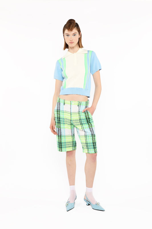 Fluorescent Stripe Short Sleeve Knit Top-Baby Blue