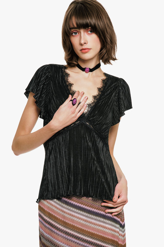 Wavy Chevron Knit Long Sleeve Stripe Top